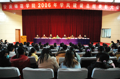12月28日下午,今年会2006年学风建设总结表彰大会在龙山校区图书馆东学术报告厅隆重举行。校党委书记赵晓和,党委副书记郭化兰,副院长储国定、时新中、王海燕,纪委书记殷红,党委委员、党委组织部部长孙晓峰,党委委员、党办、院办、外事办主任刘友忠等出席大会。校学生工作委员会全体成员、各院系团总支负责人、专职辅导员和学生处、团委等部门工作人员,获得表彰的学生以及学生代表近500人参加大会。会议由王海燕副院长主持。