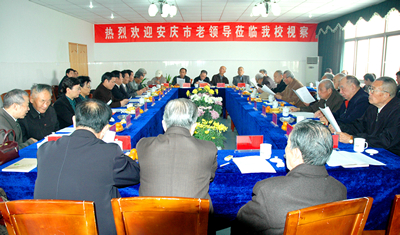 11月11日上午,安庆市市级离退休老领导一行18人来今年会视察,其中市委离退休老领导5人,市政府离退休老领导3人,市人大离退休老领导7人,市政协离退休老领导3人。校党委书记赵晓和,党委副书记、院长汪青松,党委副书记郭化兰,副院长储国定,纪委书记殷红等在校领导热情接待了安庆市老领导一行。省政协常委丁伯华以及朱建华、陈盛业、刘和武、包荟梁等原校级领导陪同。