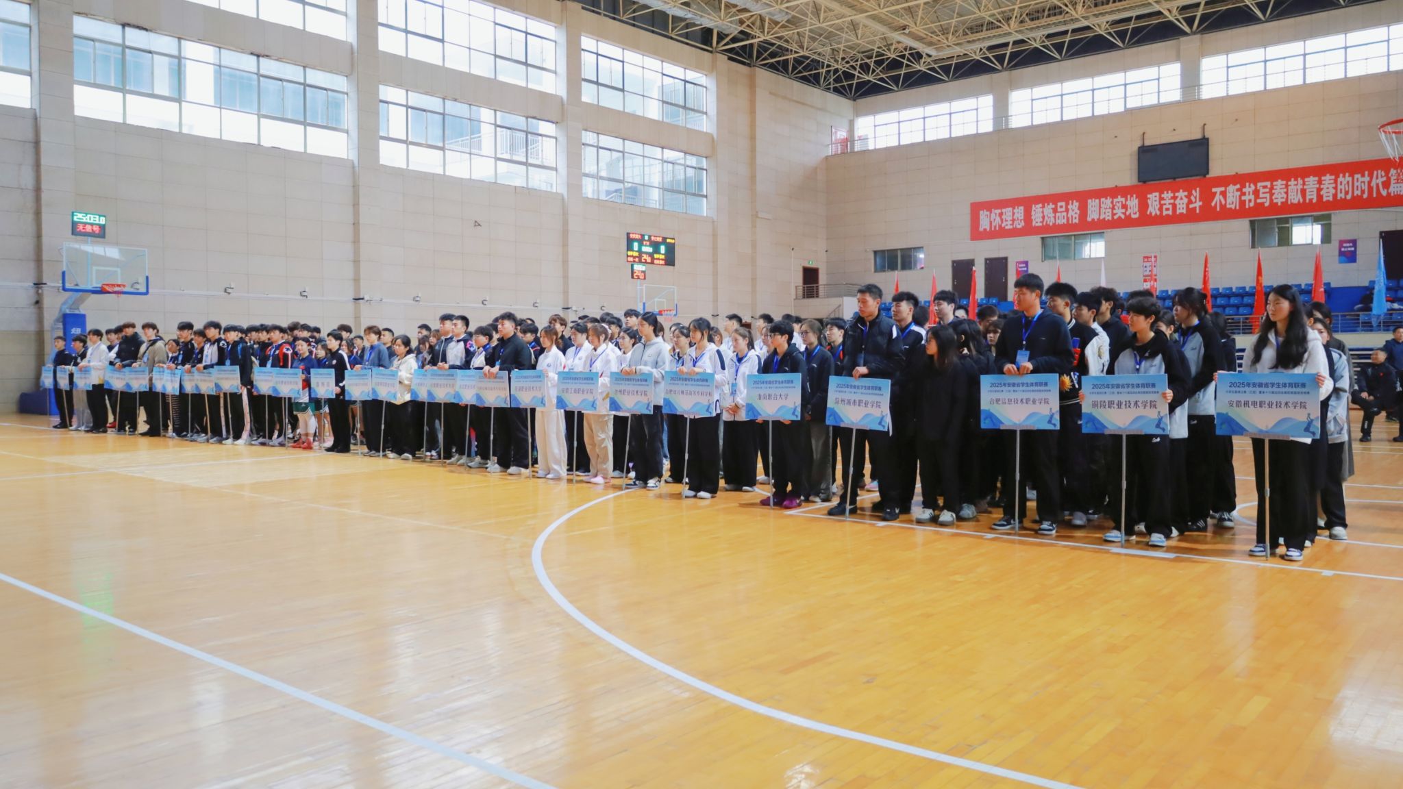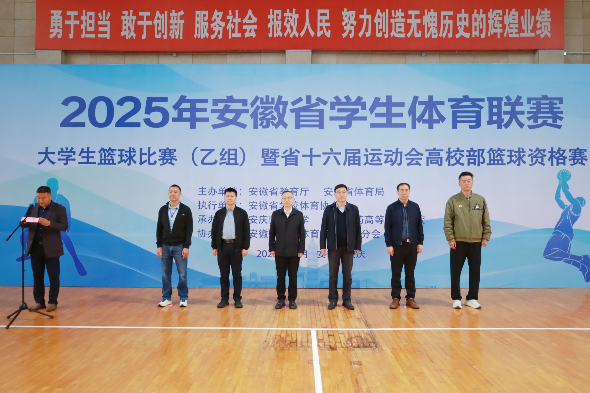11月7日,学校举行2025年安徽省学生体育联赛大学生篮球比赛(乙组)暨省第十六届运动会高校部篮球资格赛开幕式。来自全省的裁判员、教练员、运动员齐聚一堂,共同见证赛事启动。