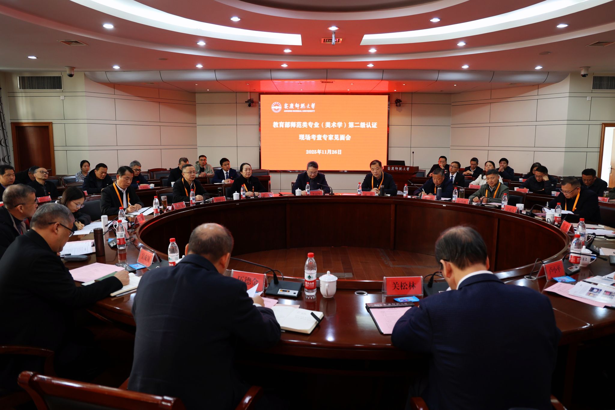 11月26日上午,关松林主持召开专家组见面会。专家组全体成员,安徽省教育评估中心负责人,学校党政领导李福华、崔明、吴琼、秦朗、徐晓宁、申传胜、张红飞、计裕人出席会议。安徽省教育评估中心负责人宣读认证文件、介绍专家组成员及与会人员,并对相关工作提出具体要求。