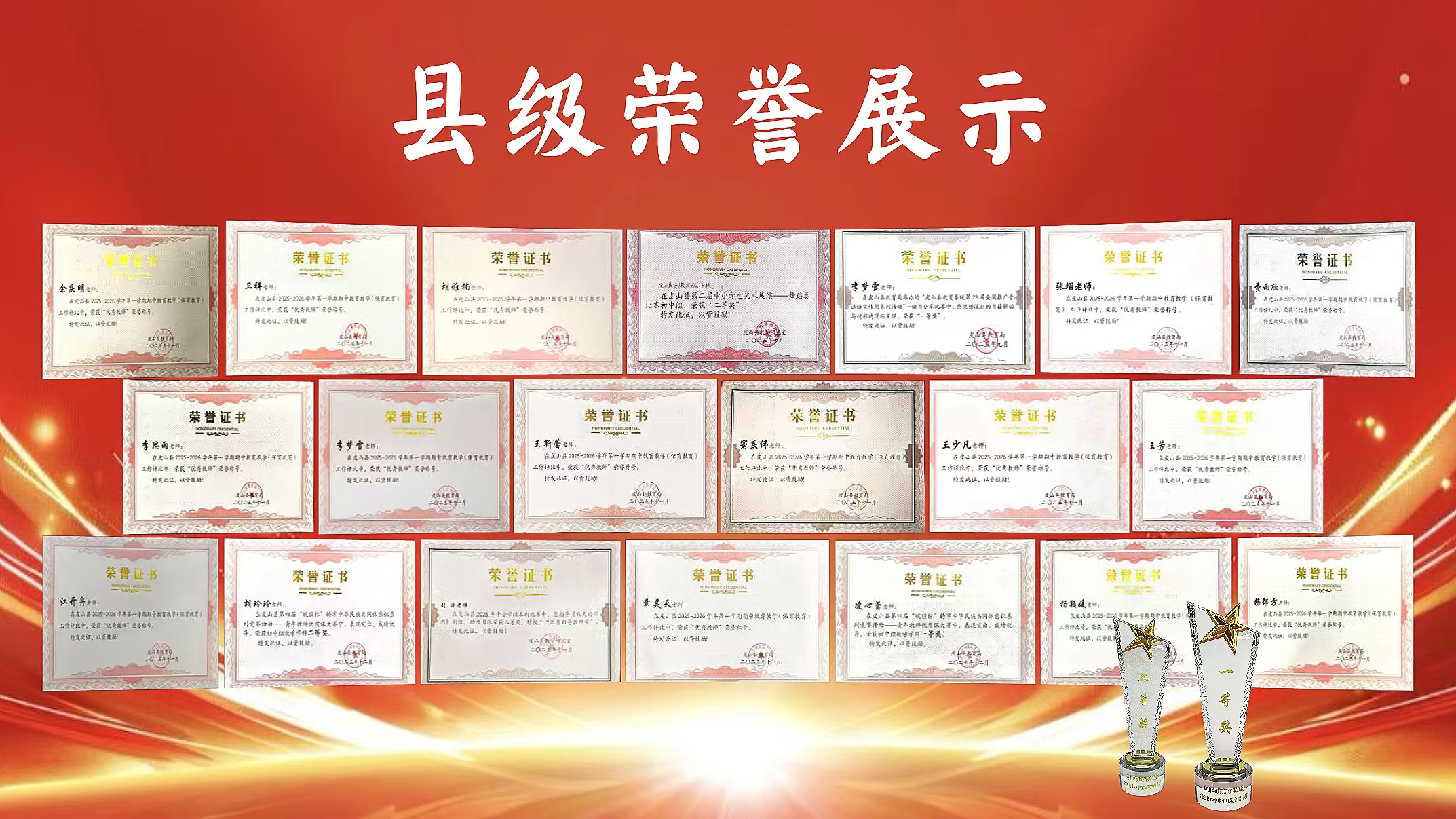 支教队员们的努力和成绩受到了皮山县教育部门和受援学校的高度肯定。四个多月以来,支教队员们共计获得皮山县“优秀教师”、皮山县“皖疆杯”青年教师优质课大赛一等奖、皮山县推普周读书分享比赛一等奖、校级“优秀教师”等各种县级和校级荣誉318人次。