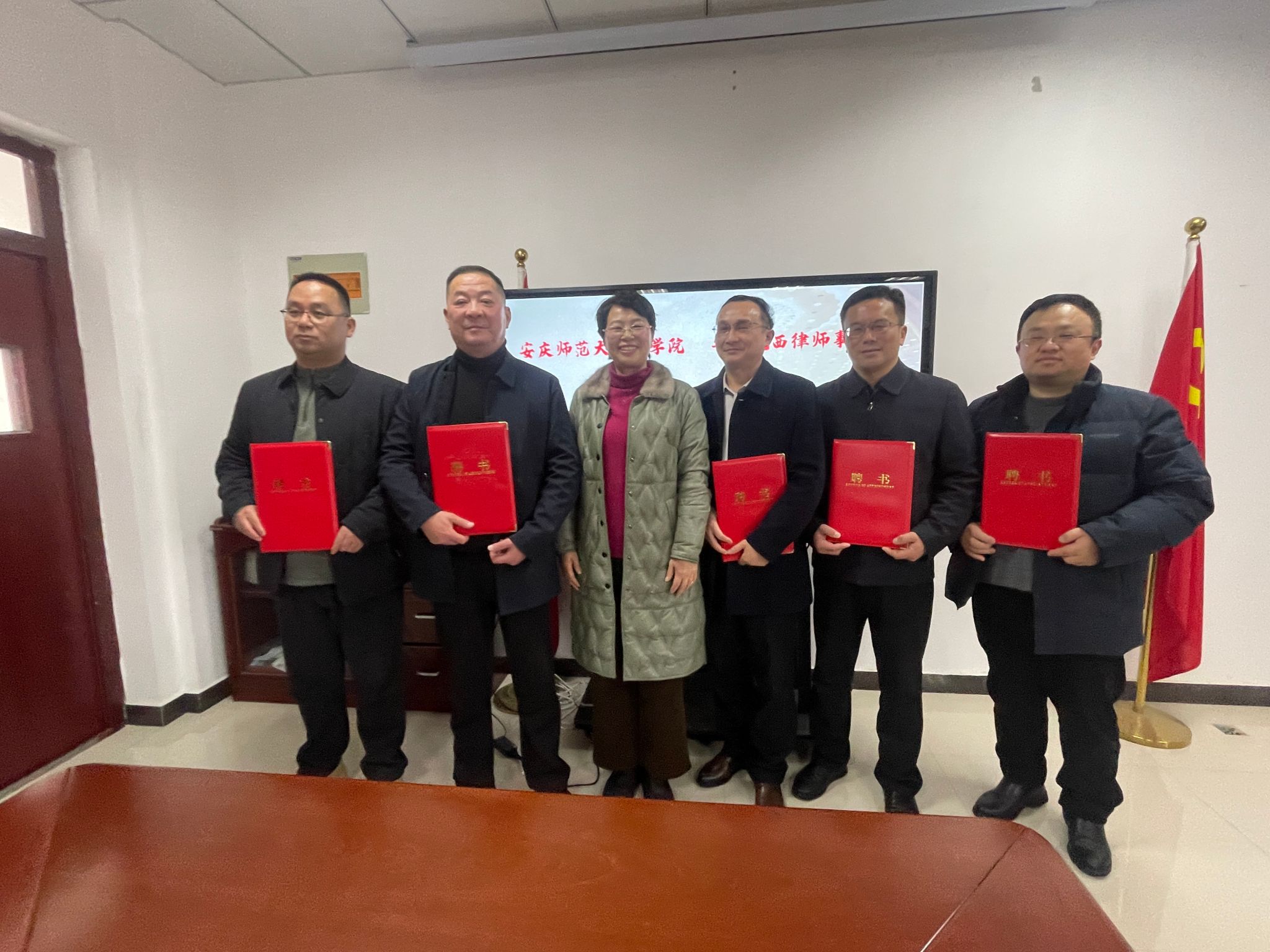 1月28日,安徽皖西律师事务所主任刘中权、党支部书记余陈一行赴法学院座谈调研,双方举行院所合作签约仪式,就共建实践教学基地、毕业生就业基地、聘任客座教授及捐赠助力学院发展等事宜达成共识、签订协议。校长彭凤莲出席仪式并致辞,校友总会办公室负责人,法学院班子成员及校友分会负责人参加会议。