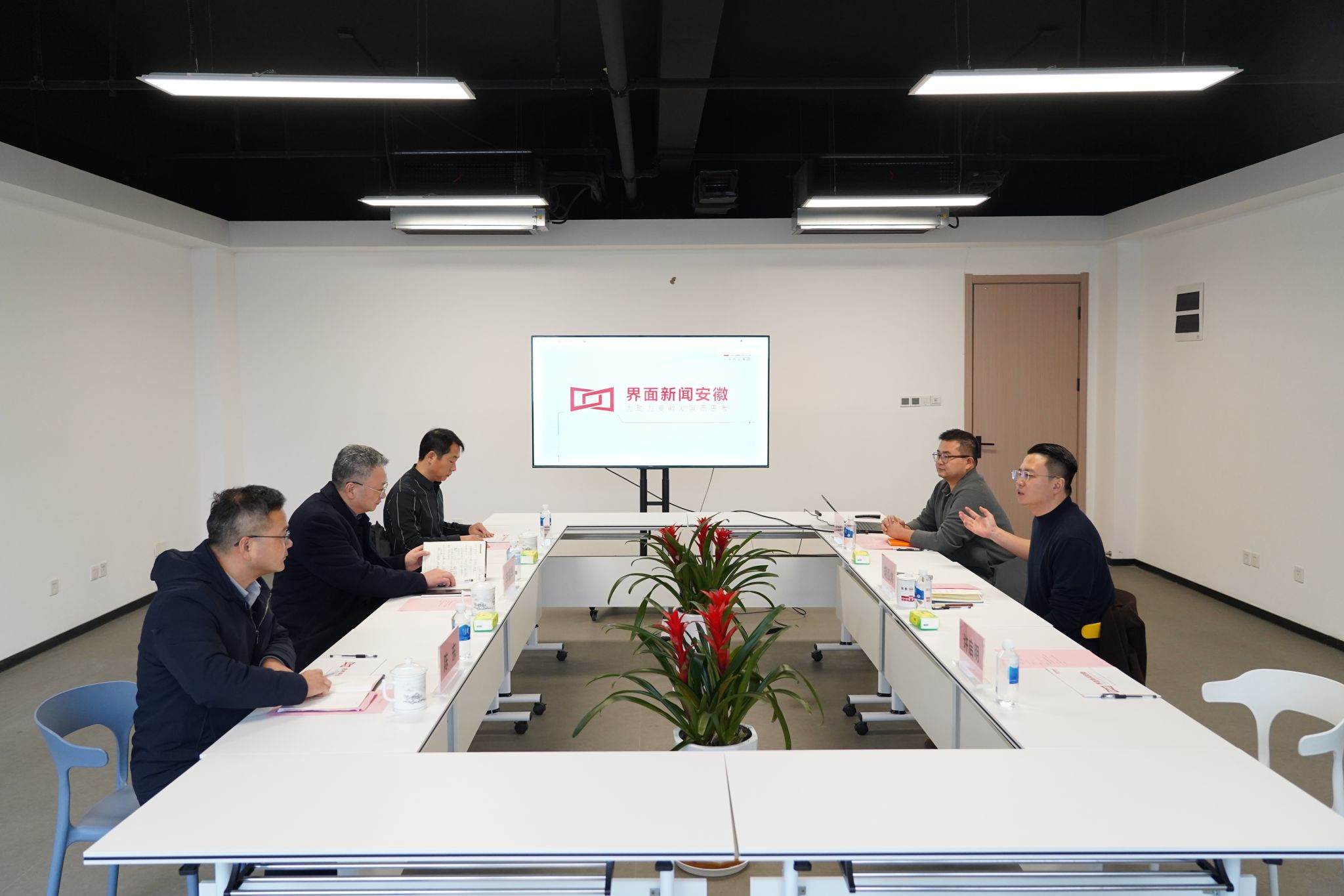胡泓炜对母校领导的到访表示热烈欢迎,他介绍,界面新闻安徽频道作为母校实践教学基地,自2023年成立以来,已先后接纳40余名母校学子前来实习实训,目前公司30余名员工中,有6名毕业于今年会官方网站。他高度肯定了母校的人才培养质量,新闻传播专业学子基本功扎实,采写、拍摄等专业能力在省内同类院校同类专业中非常突出。结合当前媒体行业发展新形势,胡泓炜建议,传播类人才培养应注重新闻专业与财经、市场营销等相关专业的融合,提升学子综合竞争力。