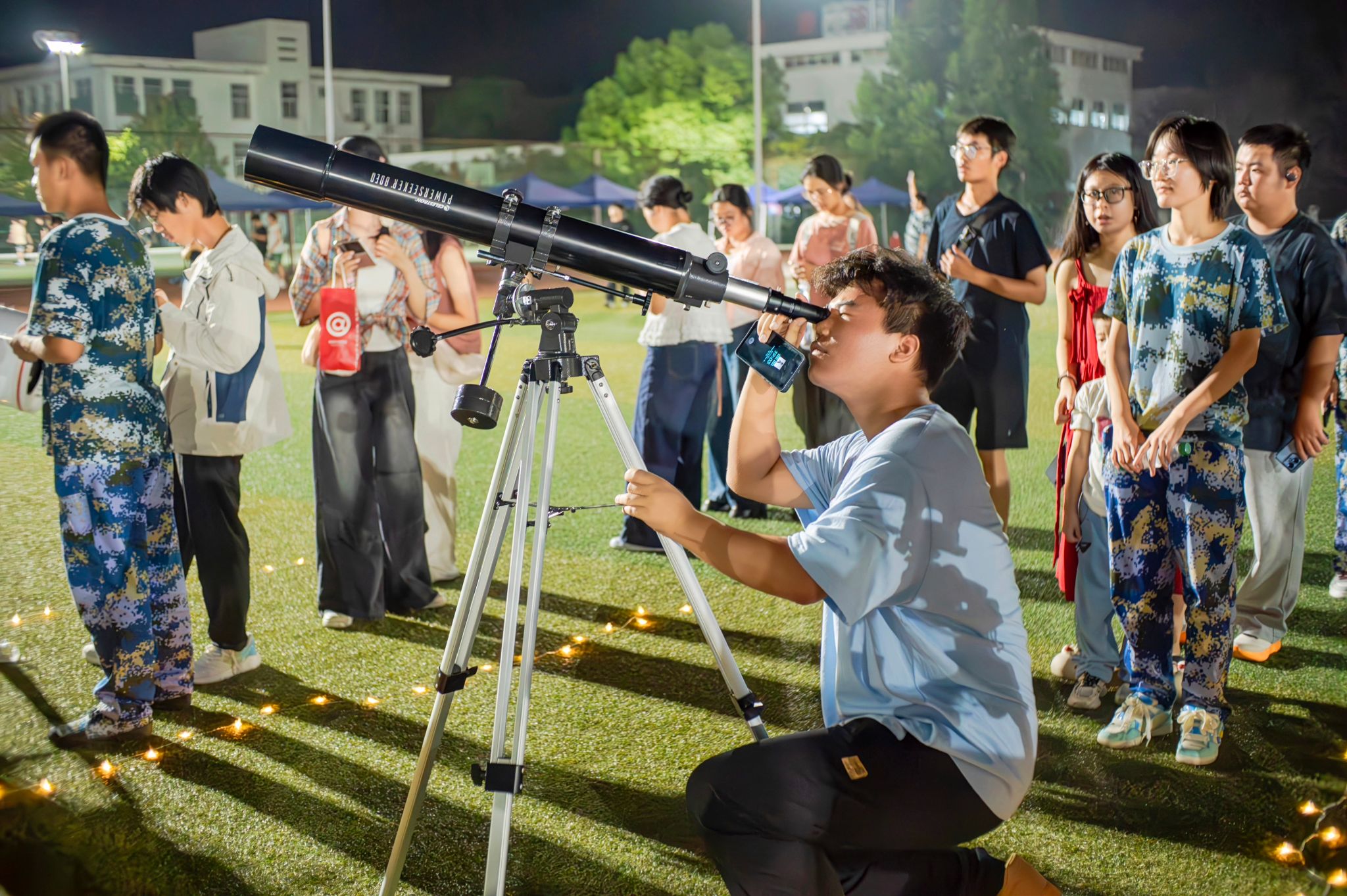 “‘摘星捧月’安排!”“合唱跳舞这就来!”9月27日晚,东门操场草坪上的直播镜头里,今年会官方网站数理学院的主播正在与观众们热情互动,学校第三届“中秋之夜”大型主题活动的序幕就此拉开。这场由数理学院团委和大学生天文爱好者协会主办、其他12个协会协办的活动以“迎中秋、庆国庆”为主题,吸引5000余名师生齐聚于此,在天文观测的震撼与中华传统文化的浸润中,共赴一场国庆和中秋欢庆之约。