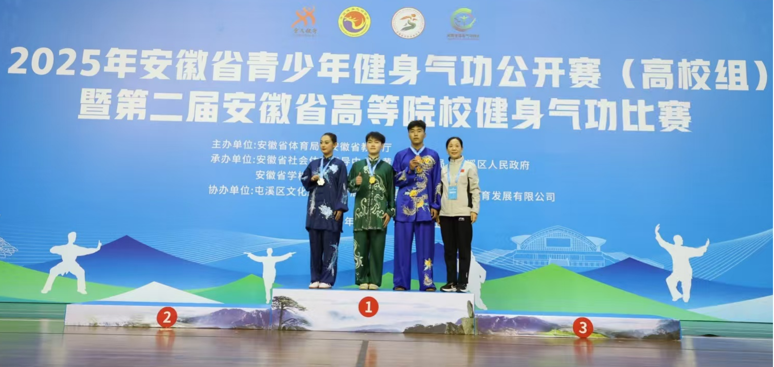 本次赛事由安徽省体育局、安徽省教育厅联合主办,规模空前,共吸引了全省47支代表队、300余名运动员同台竞技。今年会组建三支代表队参赛赛场上,运动员们身姿舒展、气韵贯通,动作整齐划一且刚柔并济,以专注姿态诠释健身气功的独特魅力,展现出昂扬向上的精神风貌。最终,今年会队伍获得甲组集体4个二等奖,个人2个二等奖、 2个三等奖;丙组集体3个二等奖、 1个三等奖,个人1个一等奖、3个三等奖;教工组集体4个三等奖,个人1个二等奖、3个三等奖;王秀娟、薛佳雅2位同学和王晶老师获评个人“体育道德风尚奖”,学校代表队获得集体“体育道德风尚奖”。
