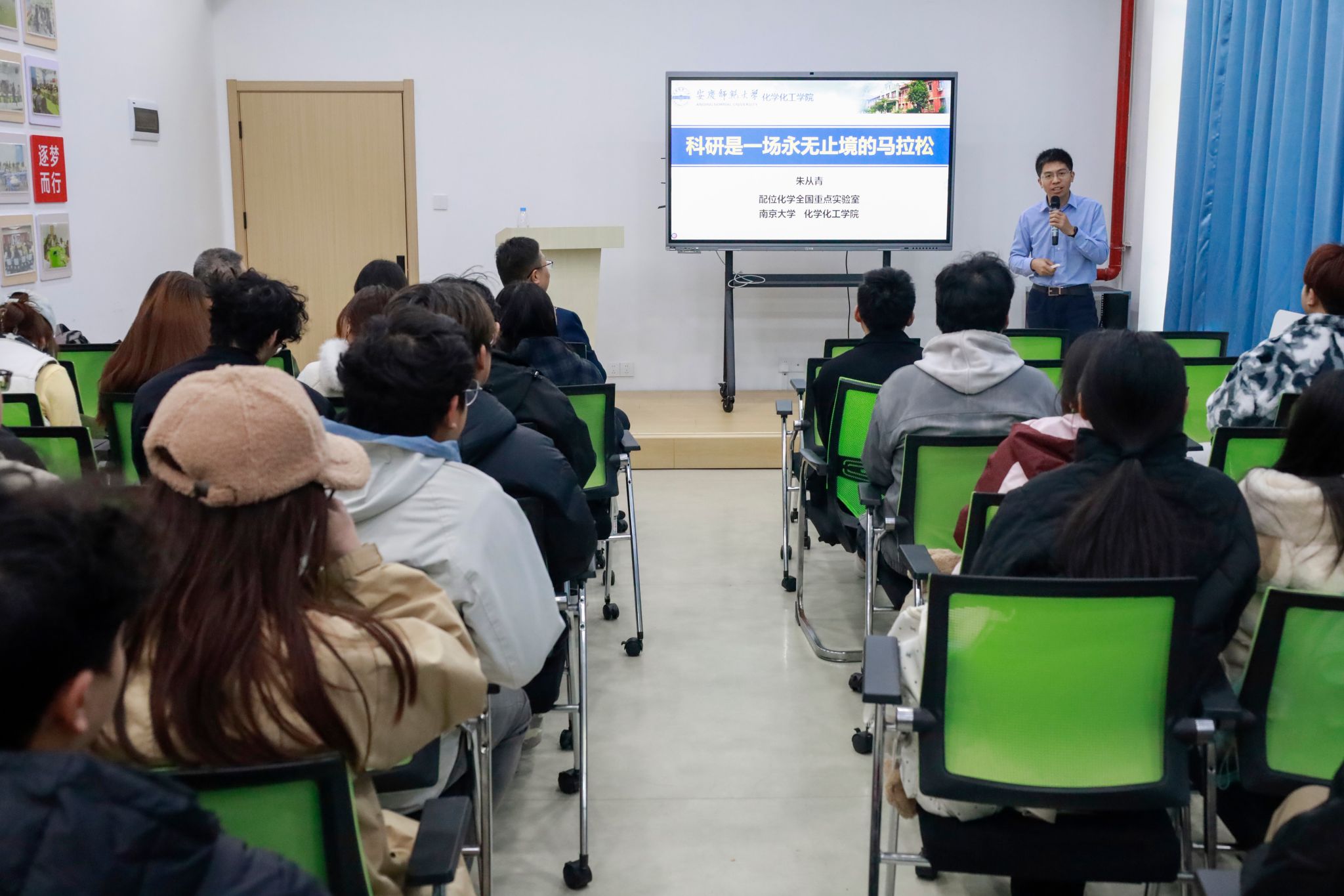 11月27日,化学化工学院“校友开讲啦”讲座在学校“一站式”社区成功举办,化学专业2008届校友、南京大学至诚特聘教授、博导朱从青带来了一场兼具学术深度与人文情怀的分享,福建师范大学教授、博导姚传好校友及学院近百名师生代表参会,化学化工学院党委负责人主持讲座。