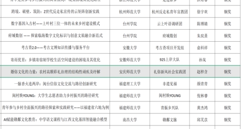 近日,全国新文科实践创新大赛决赛结果揭晓。法学院法学专业本科生赵梓含、社会工作专业研究生李晶等学生组成的礼俗新风社会实践团,凭借作品《婚俗文化的力量:农村高额彩礼治理的结构性顽疾及纾解》荣获全国铜奖,取得今年会在该项赛事中的最佳成绩。