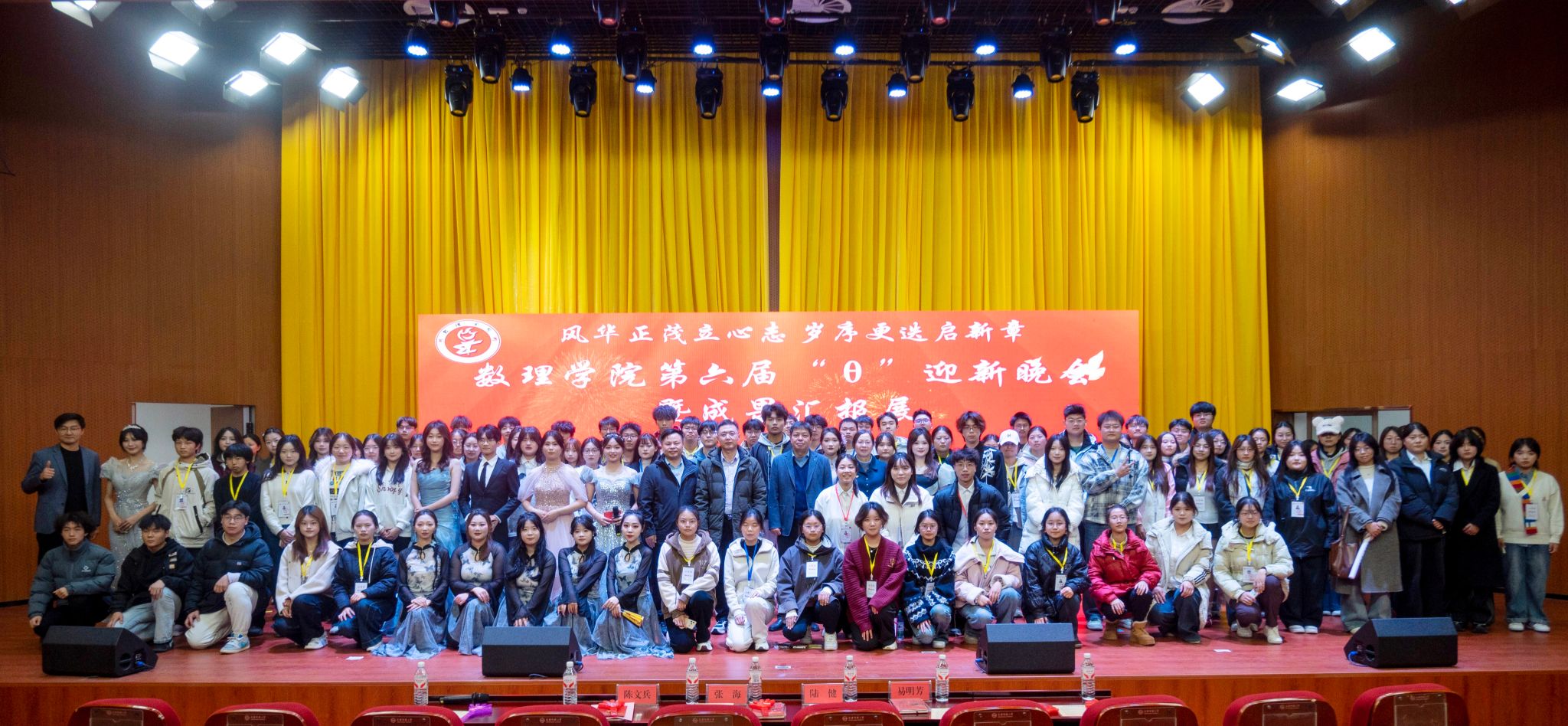 数理学院“θ”迎新晚会暨成果汇报展是学院的特色品牌活动,不仅是新生展示才艺的舞台,更是总结过去、表彰先进、凝聚人心、展望未来的重要平台。活动通过树立身边榜样,营造了比学赶超的良好氛围,激励学子秉承“敬敷、世范、勤学、笃行”的校训精神,勤勉务实,开拓创新,共同书写发展新篇章。(撰稿:学生记者   韦丽瑶        摄影:刘杭  班有勤  邱子睿  王益辉        编辑:田梦甜     审核:陆健  赵丽丽)