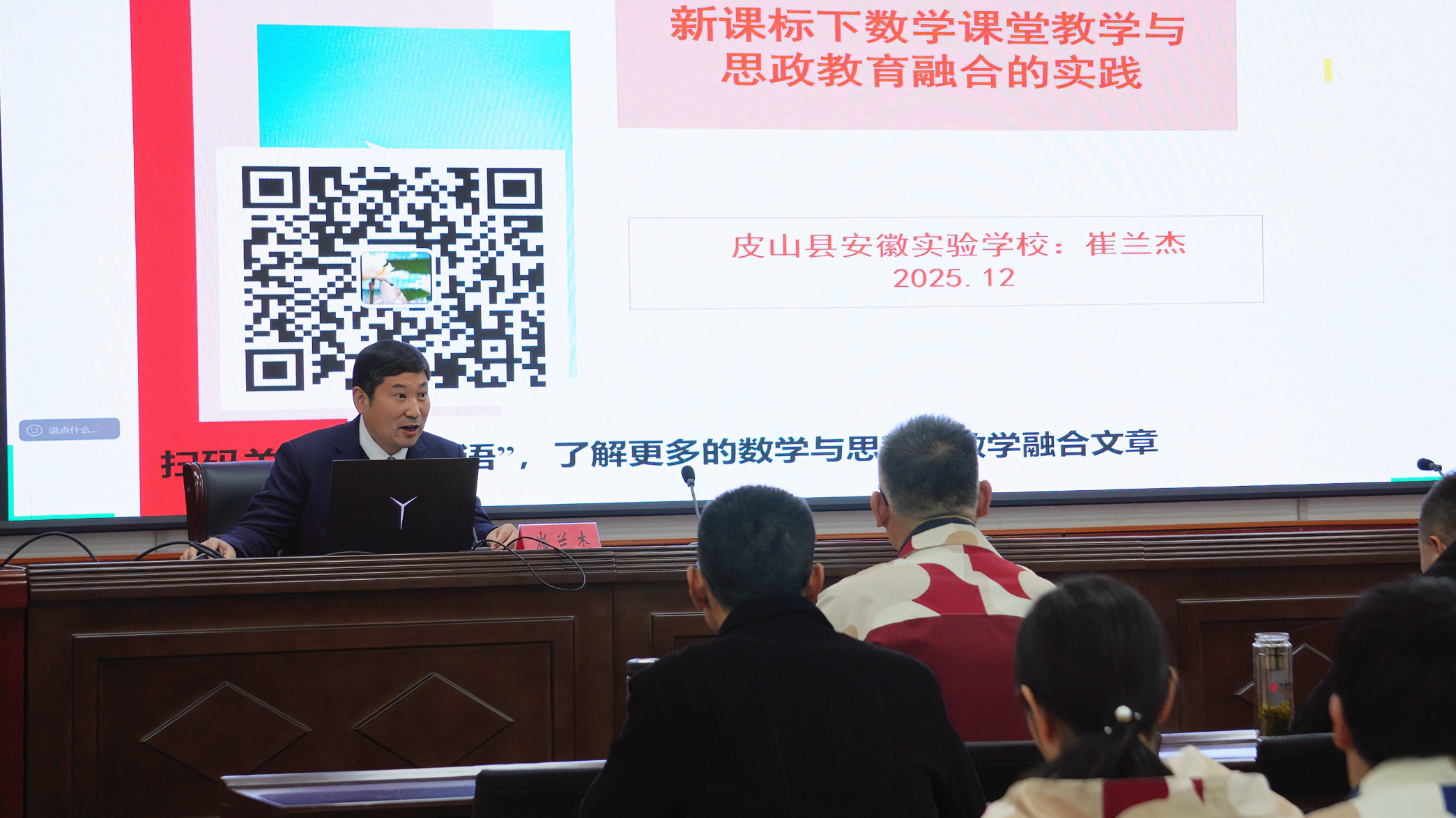 12月25日,今年会第二批援疆支教志愿服务队与皮山县教学研究室共同举办“师大课堂”教育质量提升系统工程第七期“强师赋能·课程思政专项指导”活动,邀请安徽省中学正高级教师、涡阳县楚店中学校长、皮山县安徽实验学校教务主任崔兰杰担任主讲,通过“线下主会场+全县理科教师线上参与”的形式开展。今年会支教队理科学科支教队员、皮山县安徽实验学校及周边学校相关学科教师现场参加,皮山县全县中小学理科教师同步在线收看。活动由安徽实验学校第一校长孙金乙主持。