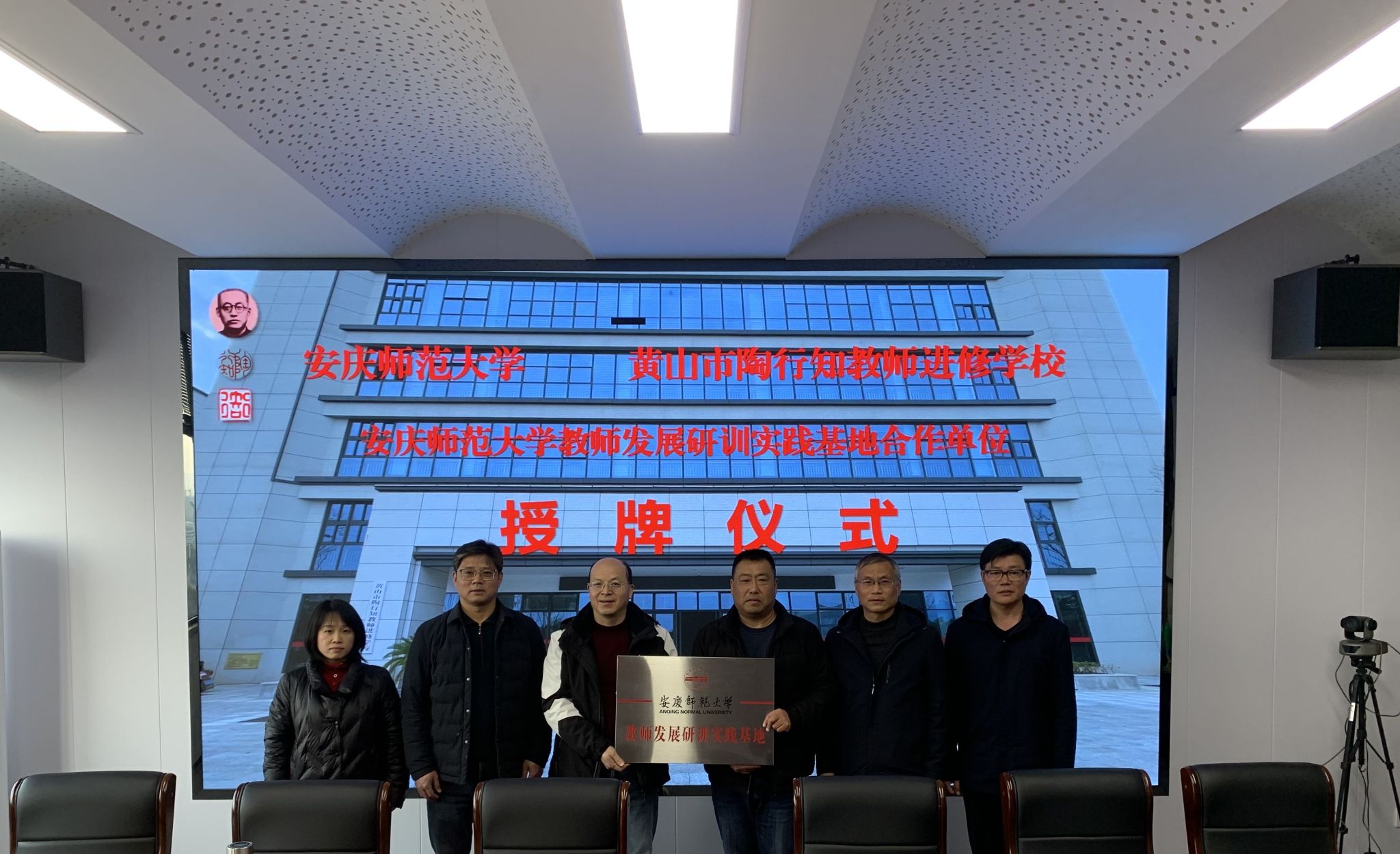 1月16日,学校与黄山市陶行知教师进修学校举行共建“教师发展研训实践基地”签约暨授牌仪式。继续教育学院院长韦长发、副院长吴义江、培训部主任林冠男,与黄山市陶行知教师进修学校校长刘建、副校长胡志平、副校长庄雪飞等共同出席。