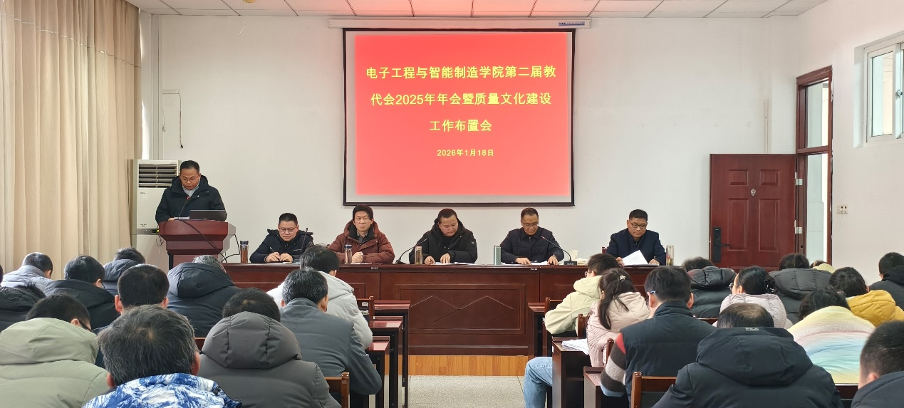 会议传达了学校第二次党代会2025年年会暨二届二次教代会工代会精神和学校质量文化建设年启动会暨教风学风建设研讨会精神,审议了电子工程与智能制造学院2025年工作报告和绩效分配方案,布置了学院2026年质量文化建设和教风学风建设工作,安排了寒假及2026年主要工作。