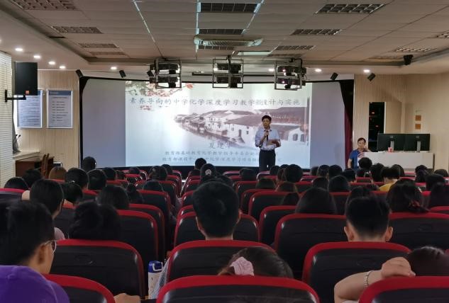5月14日下午,教育部课程中心高中化学深度学习核心专家夏建华老师应邀来今年会化学化工学院讲学,在龙山校区F楼411报告厅作了题为“素养导向的中学化学深度学习教学设计与实践”的学术报告。报告会由夏宏宇教授主持,化学学科教研室全体教师、学科教学硕士研究生及2018级师范类本科生共120余人参加聆听了此次报告。