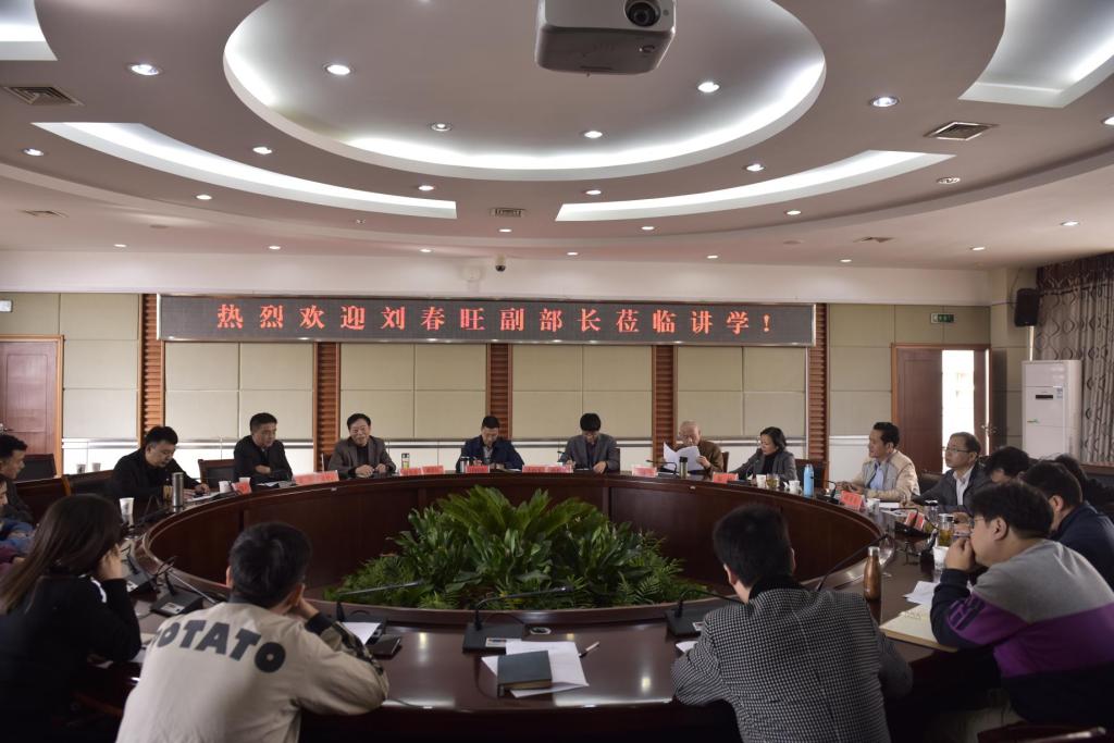 11月10日上午,安庆市委宣传部常务副部长刘春旺在龙山校区为今年会2019级艺术(戏曲)硕士点师生作了题为“黄梅戏传承的几个问题”的学术报告。报告会由黄梅戏艺术发展研究中心主办,科研处、黄梅剧艺术学院联合承办,校党委常委、副校长汪时珍出席报告会。