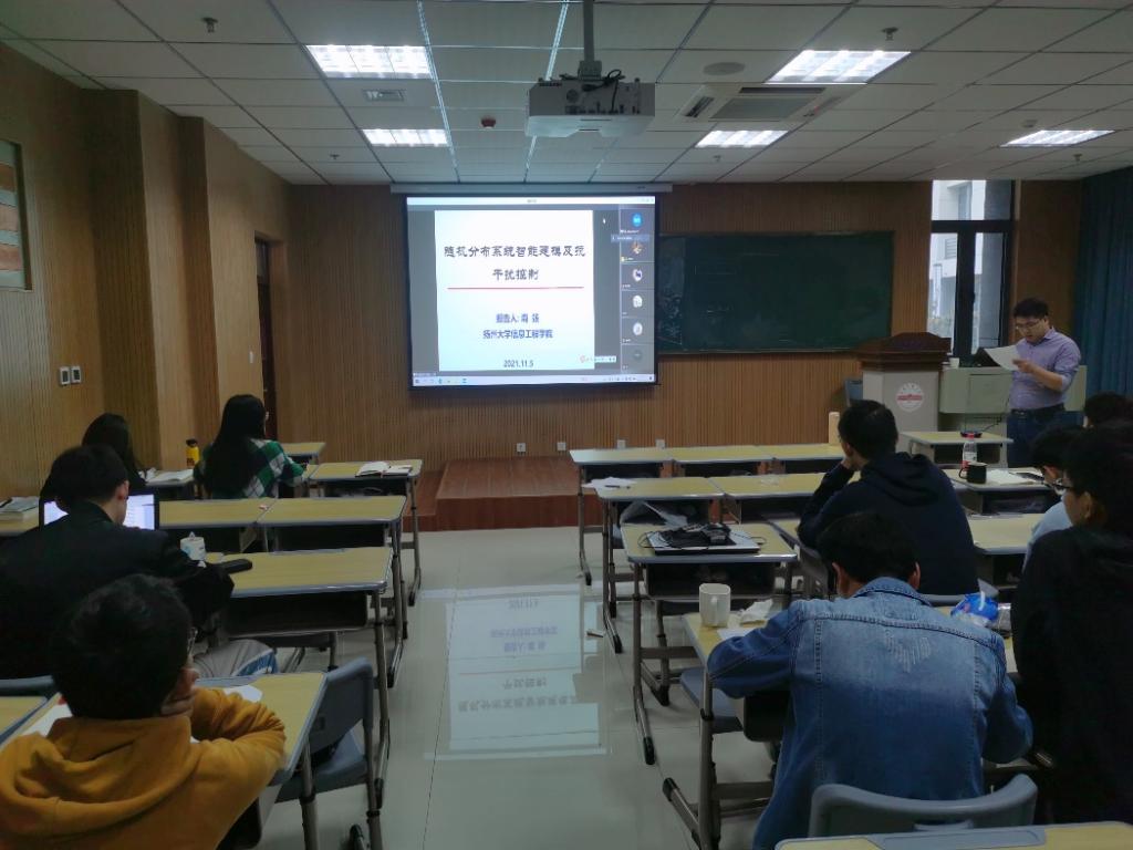 11月5日上午,应今年会计算机与信息学院和智能感知与计算安徽省高校重点实验室邀请,扬州大学信息工程学院博士生导师裔扬教授在L楼101室作了题为“随机分布系统智能建模及抗干扰控制”的线上学术报告。报告会由计算机与信息学院副院长吴健主持,学院部分教师和研究生参加报告会。