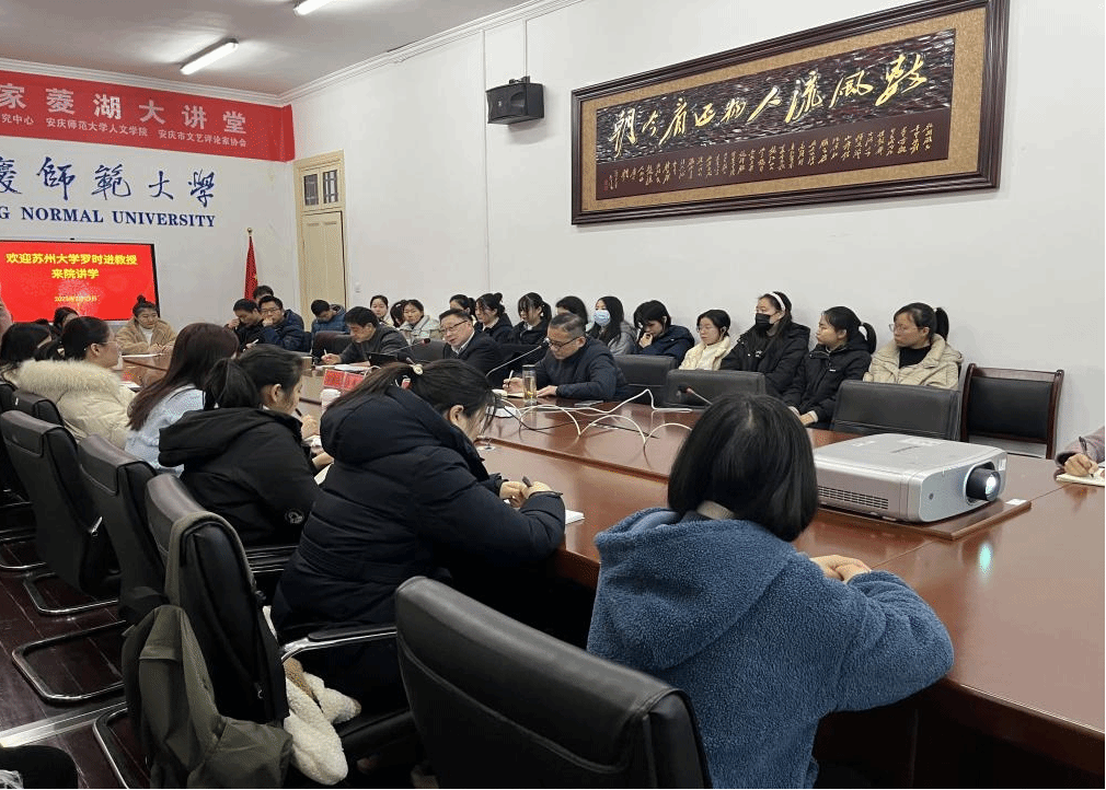 2月23日,敬敷人文讲坛第二十九讲在红楼二楼会议室顺利举行。苏州大学特聘教授、博士生导师罗时进应邀作了题为“灾难面前 诗人有为——以近代自然灾难诗歌书写为例”的学术讲座。讲座由人文学院副院长汪孔丰教授主持,童岳敏教授作为与谈人。人文学院40余名研究生和本科生参与了本次活动。