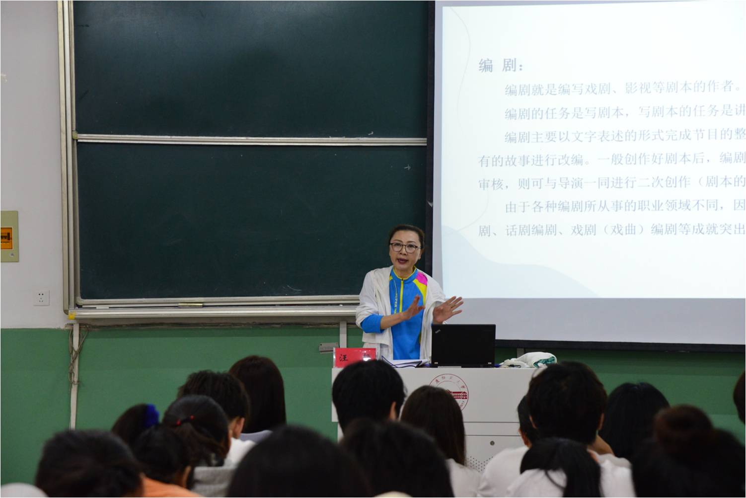 汪老师结合个人多年从事黄梅戏编导及教学的丰富阅历,与同学们分享了自己在黄梅戏表演及编导方面的心得体会与学术思考,重点以《女驸马》《天仙配》等黄梅戏经典剧目为例,从编、导、演三个层面入手,详细讲解并现场示范如何在舞台实践中真正做到编剧、导演、演员三者之间的有效沟通。讲座过程中,汪老师还播放了她指导的学院2020级戏曲编导方向研究生编排的戏曲小品《木兰辞》,获得同学们的热烈掌声,现场气氛热烈。