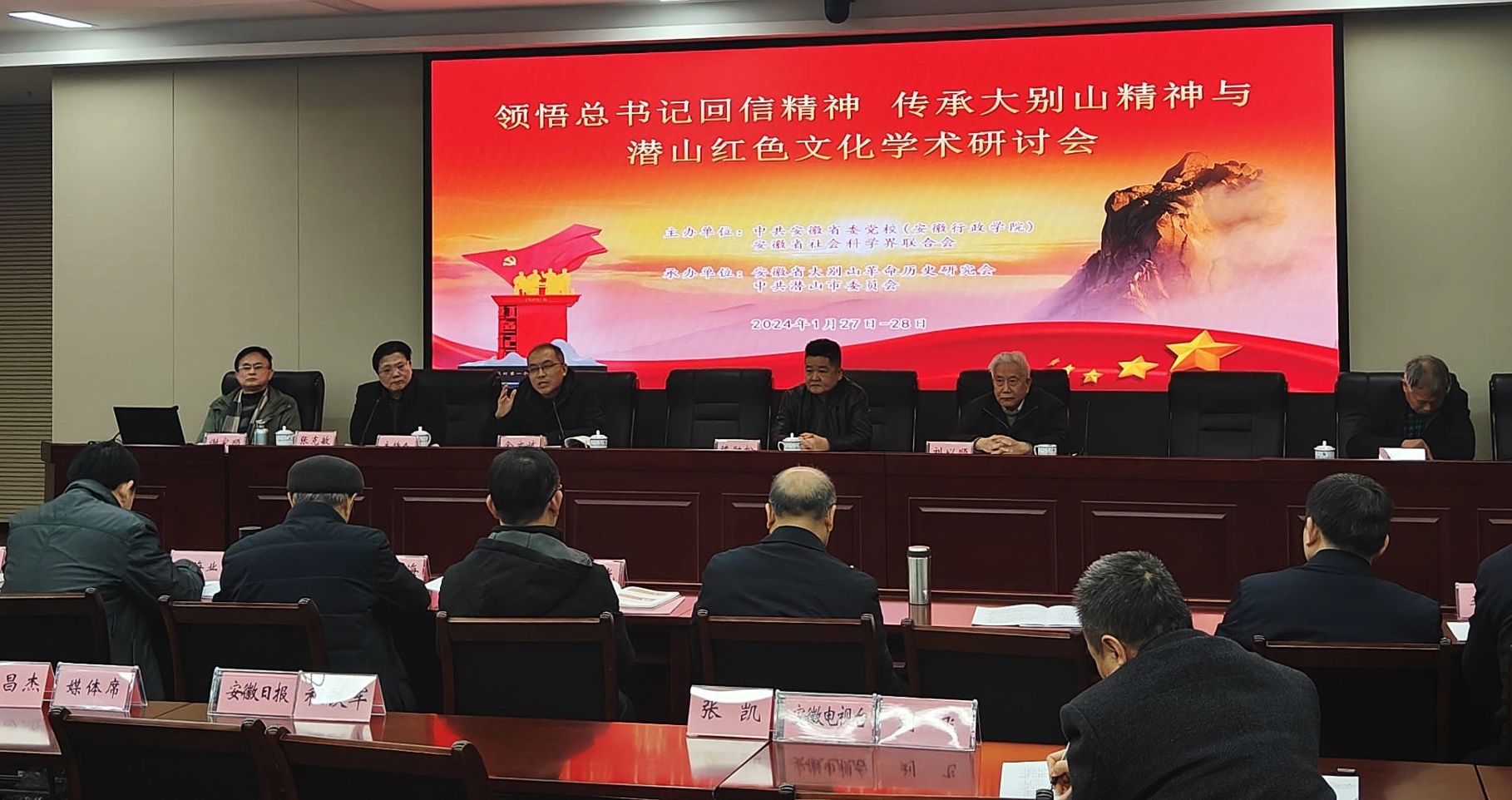 近日,由安徽省社科联、安徽省委党校联合主办,安徽省大别山革命历史研究会、中共潜山市委承办的“领悟总书记回信精神 传承大别山精神与潜山红色文化学术研讨会”在合肥召开,来自全省高校、党校和研究机构的150余名专家学者出席会议。马克思主义学院大别山革命文化研究中心金文斌教授、方伟博士、侯汪礼老师应邀参加。