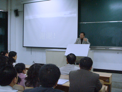 王东风教授首先简单回顾了自己在母校的学习和工作经历,介绍了自己的奋斗历程,并勉励同学们要努力学习,不断追求进步,争取学有所成;接着,王教授通过对两个英语翻译案例的分析,切入了此次讲座的主题。他从被动变译概念的解释、被动变译理据的缺席和被动变译的文学性缺失等三个方面对“被动语态变译的功能亏损”进行了详尽的阐释,和与会教师及同学们一起探索了这一学术前沿课题。随后,王教授还就老师和同学们提出的相关的问题进行了认真解答,并与大家分享了自己在学术研究领域的一些宝贵经验。他说,同学们在做学问的时,不仅要掌握扎实的专业知识和技能,更要注意其他人文知识的积累,特别是英语语言学、西方文论知识和相邻专业理论的深入领会,用辩正的思维去思考与研究,进而建立属于自己的理论体系和成果。王教授的讲座深入浅出,语言诙谐幽默,并结合许多简单的例子,使同学们轻松地对翻译的前沿知识有了一定的了解。讲座在一片热烈的掌声中结束。
