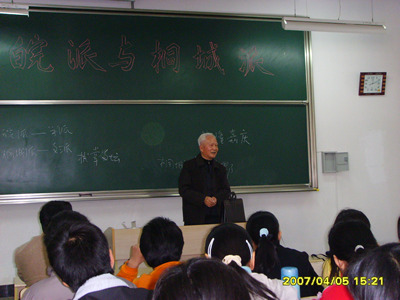 石教授从三个方面对“皖派”与“桐城派”进行解说。首先他指出同形成于清乾隆嘉庆年间的两派的区别:“皖派”以徽州为中心,是“学派”;“桐城派”以桐城为基地,是“文派”。然后,石教授重点分析了“皖派”。最后,石教授阐述了两派之间的关系。