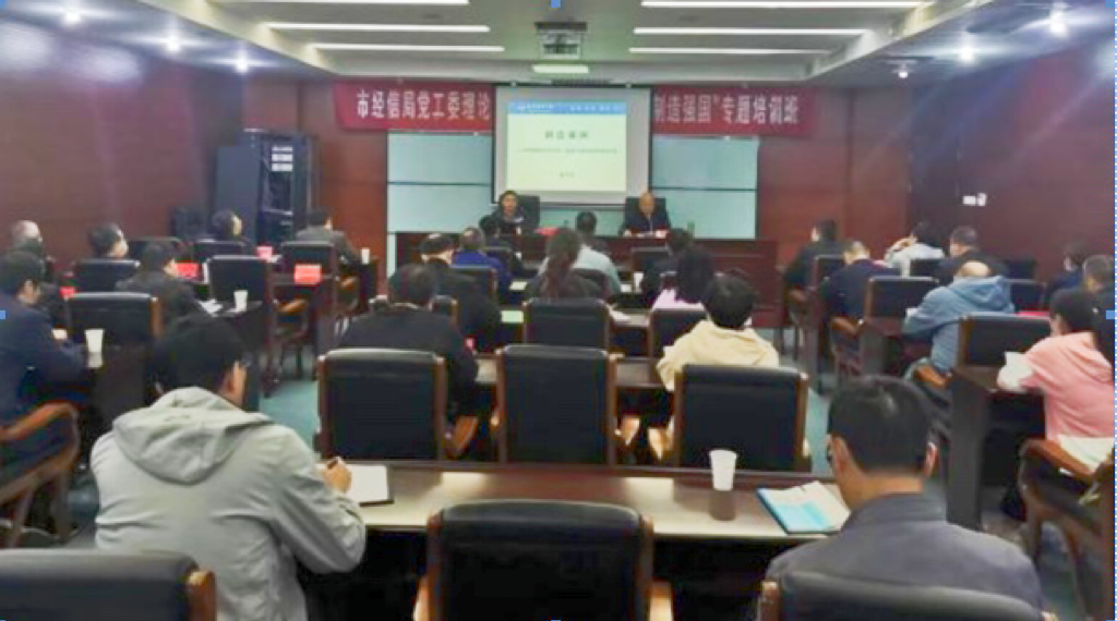 10月14日下午,电子工程与智能制造学院董甲东教授应邀到安庆市经信局理论学习中心组作“制造强国”专题报告。市经信局党工委书记、局长吴爱德主持报告会。市经信局机关全体干部职工、市经信局系统各党组织负责人参加。