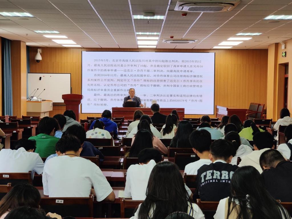 崔汪卫教授向同学们讲解了国家知识产权强国战略纲要,并带领大家观看在中央政治局第二十五次集体学习时的重要讲话。报告以案例为线索,通过列举近年来诸如乔丹商标案、腾讯诉奇虎360、阿里巴巴不正当竞争案等热点知识产权侵权案例,向同学们展示了当今时代知识产权对于国家发展的重要性和知识产权创造的价值之大、财富之多。报告主要从知识产权的重要性、民法典没有设置知识产权编的原因、《民法典》知识产权条款中“专有的权利”、“专有的权利”与保护的客体、“专有的权利”的法定性等方面进行详细讲解,让同学们对我国著作权、专利权、商标权、商业秘密权等相关知识产权制度有了一个更为直观深入了解。