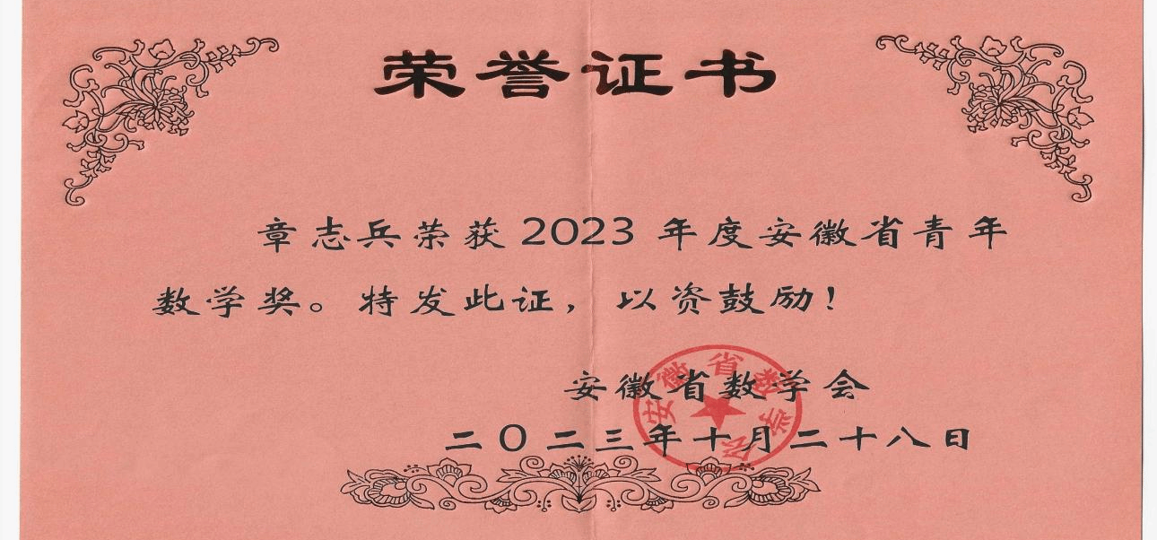 附:安徽省数学会于2016年设立“安徽省青年数学奖”,旨在促进安徽省数学事业的发展,激励广大从事数学研究工作的优秀青年教师为安徽省数学事业贡献力量。奖励对象为在我省数学研究工作中做出突出成绩,具有较大发展潜质的优秀数学青年工作者,年龄一般不超过35周岁。