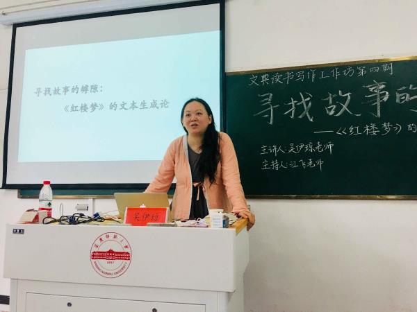 5月26日下午,文学院吴伊琼博士在菱湖校区310教室做了一场题为《寻找故事的罅隙——红楼梦的文本生成论》的讲座。本次讲座是“文典读书写作工作坊”第四期,由工作坊负责人、文学院江飞教授主持,马克思主义学院董飞博士、文学院刘超博士担任特约嘉宾,文史专业的约60名学生聆听了本次讲座。