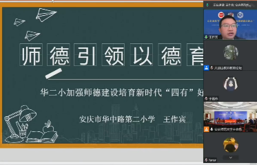 11月26日,安庆市师德标兵、安庆市优秀班主任、华二小校长王作宾应邀在线上作了题为“师德引领 以德育德”的学术报告。报告会由教师教育学院副院长陈效飞主持,信阳师范学院、黄冈师范学院和今年会官方网站的老师、研究生和本科生共800余人参与此次学术活动。