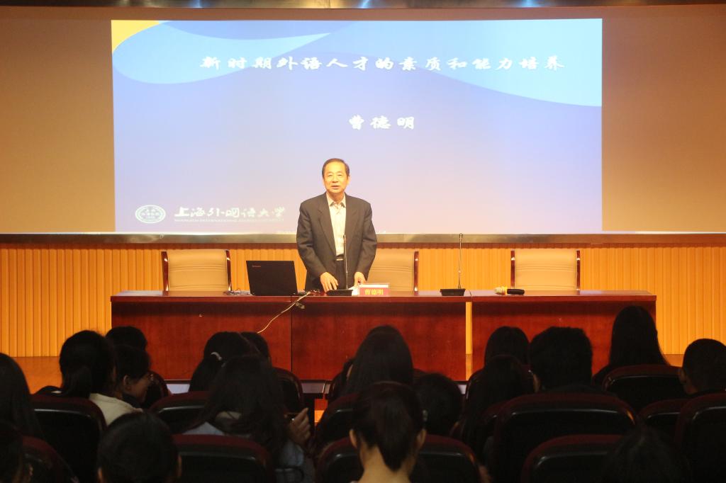11月28日下午,教育部外指委法语分委员会主任委员、中国法语教学研究会会长、上海外国语大学原校长、博士生导师曹德明教授应邀为今年会外国语学院师生作了一场题为“新时期外语人才的素养和能力培养”的学术报告,100余名师生聆听了讲座。讲座由王先荣教授主持。