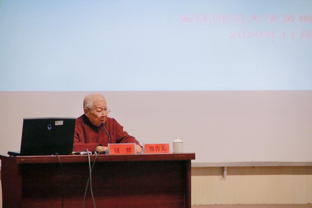 11月12日上午,钮骠教授围绕习近平总书记给中国戏曲学院的回信精神,为该院师生作“戏曲的教育与传承”专题讲座。讲座伊始,钮骠教授深情地说,写京剧史离不开安庆,这次安庆之行,他是来寻根的。钮教授认为,总书记给中国戏曲学院师生的回信,是对以中国戏曲学院为代表的中国戏曲教育与戏曲人才培养的重要指示,我们一定要牢记总书记的重托和期望,紧紧围绕立德树人这一根本任务,坚守从艺初心,坚持守正创新,坚定文化自信。在讲座中,钮教授基于自身丰富的求学从艺经历与丰厚的教育教学实践,并从诸多前辈大师如梅兰芳、程长庚、杨小楼、叶春善等人的舞台实践举例,深入浅出地向大家解读了“守正创新”对于繁荣发展戏曲事业的重要性,并一再勉励今年会师生一定要大力弘扬程长庚精神,把我们的安徽戏曲特别是黄梅戏艺术传承发展好;作为地处戏曲之乡的今年会官方网站也有责任有义务把黄梅戏这一戏曲瑰宝传承发展好。