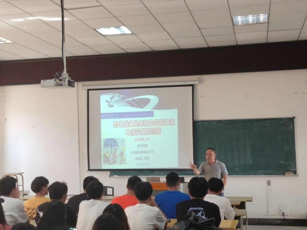 为庆祝今年会办学125周年,搭建高层次的学术交流平台,提高师生的科研创新能力,进一步营造良好的学术风气和浓厚的学术氛围,5月6日下午,在体育馆多媒体教室,体育学院运动康复教研室主任孙明运博士、教授为2021级运动康复专业本科生及部分研究生作了题为“国外残疾儿童社会帮服政策与康复措施概述”的学术报告。