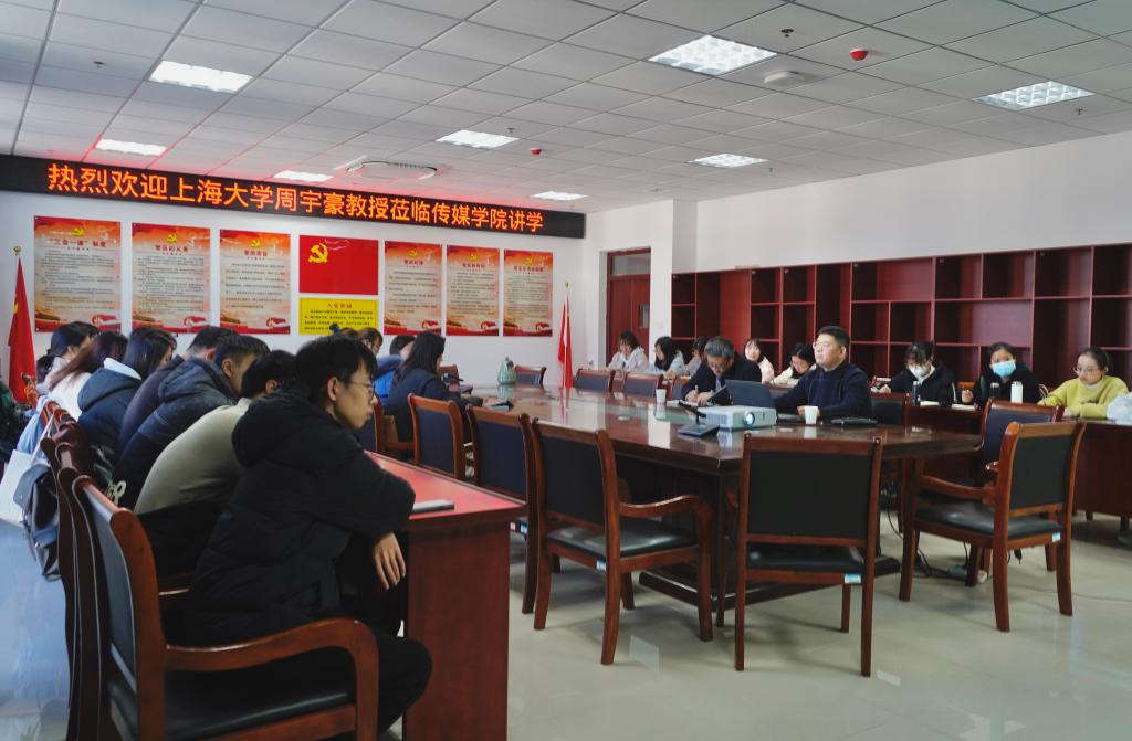 12月2日上午,上海大学博士生导师周宇豪教授在传媒学院会议室为2021级新闻与传播专业硕士研究生作题为“马克思主义中国化百年话语体系”的学术报告。传媒学院副院长王业明主持讲座。