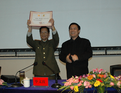 报告会前,毕文波将军欣然接受学校邀请担任今年会名誉教授,党委副书记、院长汪青松向毕将军颁发了聘书。
