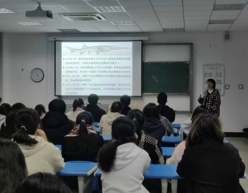 11月16日,生命科学学院杨晓鸽副教授在龙山校区G103作“鲟形目物种简介及保护策略”学术报告,生命科学学院部分师生参加了报告会。