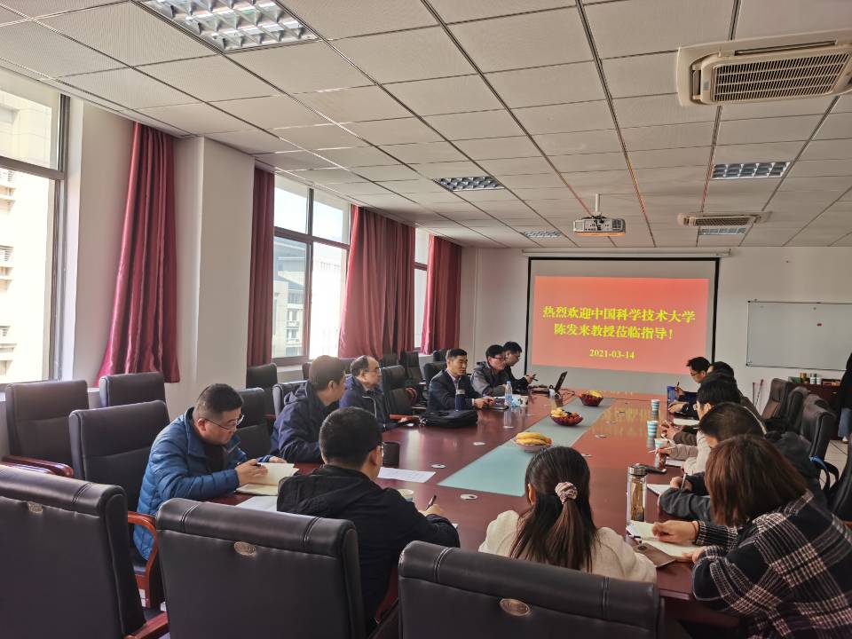 3月14日下午,国家杰出青年基金项目获得者、国务院学位委员会第六届学科评议组成员、现任教育部高校数学类专业教学指导委员会委员、中国科学技术大学陈发来教授应数理学院邀请来今年会指导学科、专业和课程建工作。数理学院在I楼307会议室召开学科、专业和课程建设座谈会,陈发来教授、学院院长申传胜教授、副院长张海教授、各硕士点点长、各系部主任、各教研室主任、教学科研办公室工作人员参加会议,会议由院长申传胜教授主持。