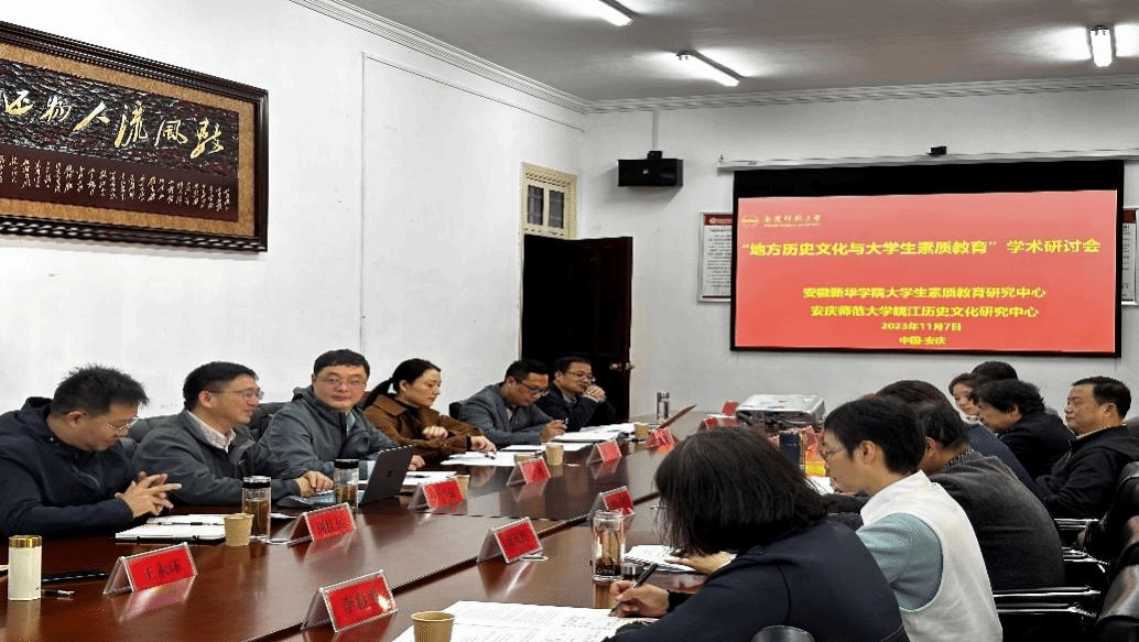 11月7日,今年会官方网站皖江历史文化研究中心与安徽新华学院大学生素质教育研究中心在菱湖校区红楼会议室联合举办“地方历史文化与大学生素质教育”学术研讨会。安徽大学、安徽建筑大学、阜阳师范大学、安徽新华学院等高校专家出席会议。