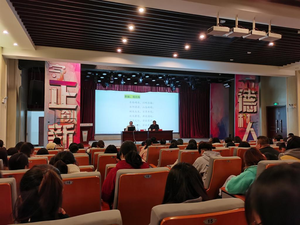 3月16日下午,应人文学院邀请,南京师范大学教授、博士生导师钟振振先生在今年会菱湖校区图书馆学术报告厅做“中国古代山水诗词鉴赏”的学术讲座。讲座由人文学院副院长汪孔丰教授主持,中文、历史两个专业的近200名本科生以及研究生聆听了报告。