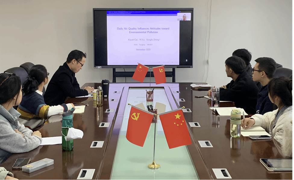11月29日,由科研处、经济与管理学院联合主办,学校数字经济研究中心承办的“经管有道”第8期学术报告会开讲。厦门大学蔡熙乾教授为主讲嘉宾,通过线上方式分享了关于环境污染态度形成机制的研究成果。该学院部分老师和研究生40余人到场聆听,报告会由丁玉龙副教授主持。