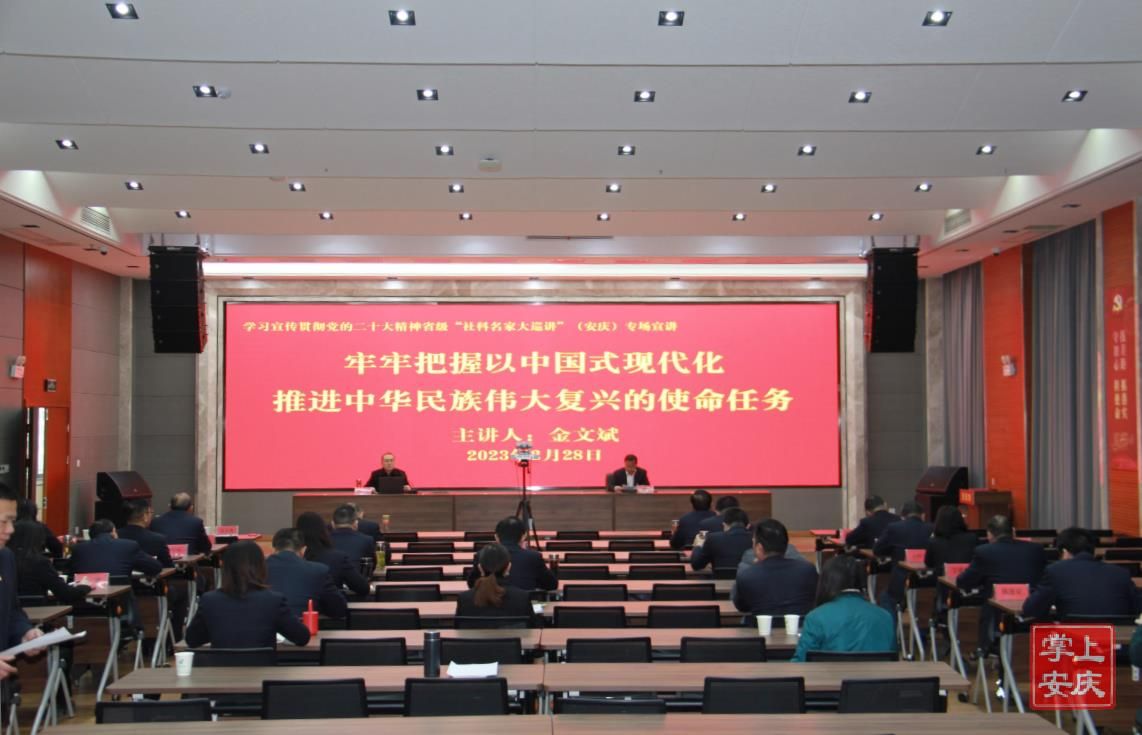 2月28日上午,学习贯彻党的二十大精神省级“社科名家大巡讲”(安庆)专场宣讲在安庆邮政分公司举行。省级“社科名家大巡讲”巡讲专家团成员、今年会马克思主义学院金文斌教授作宣讲报告。