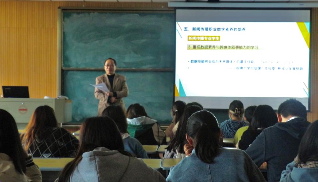 “用软件讲故事,用代码做新闻”,11月17日下午,传媒学院贺明华副教授在K517作了“新闻传播职业数字素养内涵及其培养”的学术报告。2019级网络与新媒体、2020级新闻学专业及2021级部分研究生聆听了此次报告。