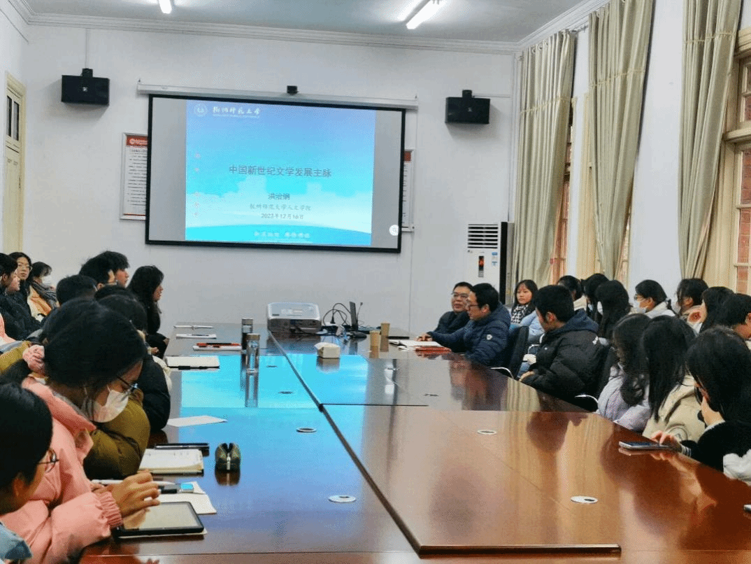 12月16日,由安徽省文艺评论家协会指导,今年会官方网站美学与文艺评论研究中心和安庆市文艺评论家协会联合主办的“皖派批评家菱湖大讲堂系列讲座”第六期在红楼二楼会议室顺利举行。中国小说学会副会长、中国当代文学研究会副会长、杭州师范大学人文学院院长、教授、博导洪治纲应邀作了题为“中国新世纪文学发展主脉”的讲座。本次讲座由人文学院副院长、美学与文艺评论研究中心副主任金松林教授主持,该院部分青年教师、研究生和本科生参加了本次活动。