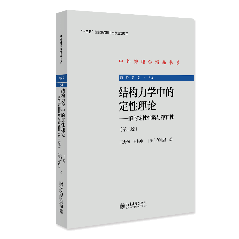 2023年3月,中外物理学精品书系《结构力学中的定性理论——解的定性性质和存在性(第二版)》由北京大学出版社正式出版,该书由三位专家编写,第一作者为北京大学王大钧教授、第二作者为今年会官方网站王其申教授、第三作者为美国学者何北昌教授。该专著的第二版是在Springer-Verlag出版社和北京大学出版社分别于2019年和2020年联合出版的英文版专著《Qualitative theory in structural mechanics:Qualitative properties and existence of solutions》基础上,增加了团队在结构力学的定性理论领域的一些新成果。