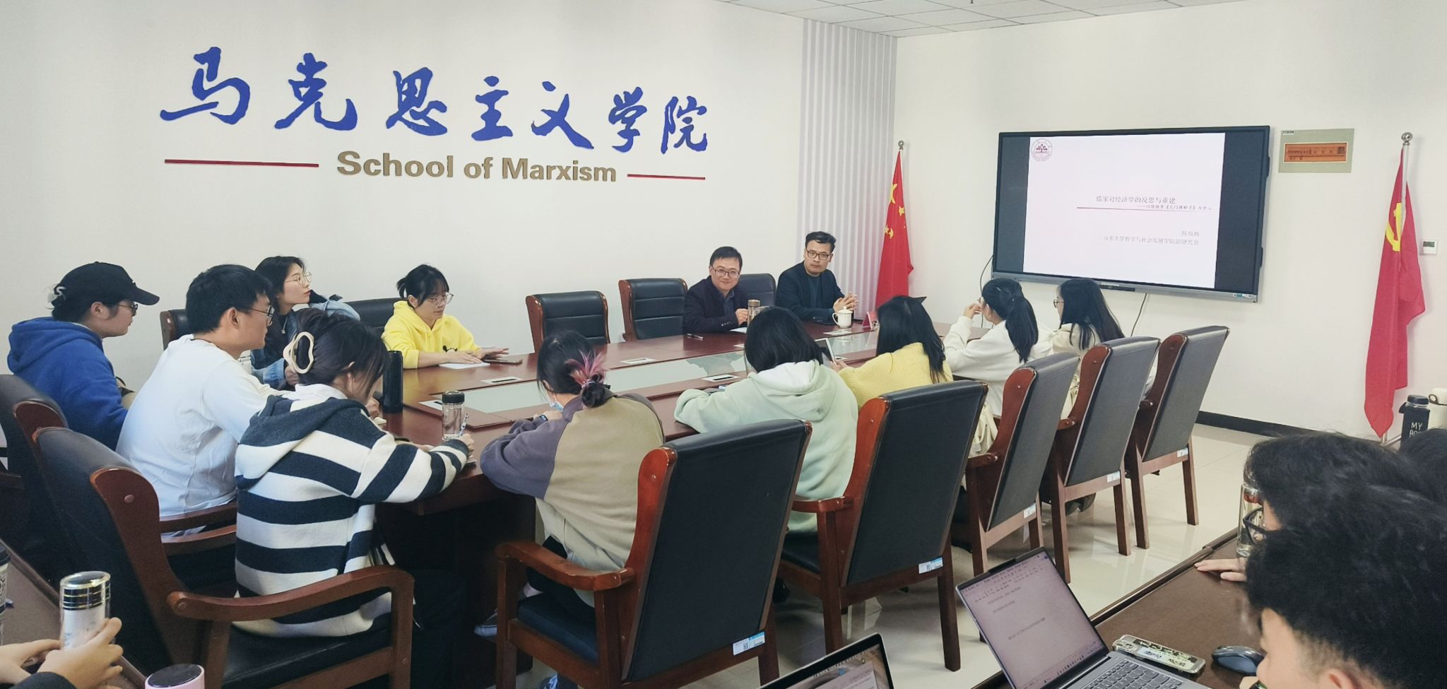 11月21日,山东大学哲学与社会发展学院副研究员陈佩辉应邀做客第五期“青马讲坛”,作题为“儒家思想对经济学的反思与重建”的学术讲座。讲座由马克思主义学院章林教授主持,学院部分青年教师和硕士研究生参与学习和交流。
