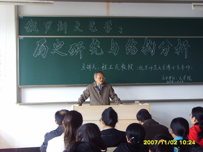 11月2日,应文学院邀请,北京师范大学博士生导师程正民教授、法国某大学与北京大学双博士学位获得者钱翰老师在文源楼303、405教室分别作了题为“俄罗斯文艺学:历史研究与结构分析”和“文学与语言学”的学术报告,文学院师生共300余人聆听了报告。