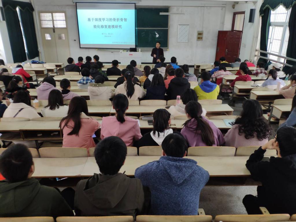 12月15日和16日,计算机与信息学院陈义仁老师在稼先楼南一阶教室为今年会数字媒体技术专业2018级和2017级近200名学生做了题为“基于深度学习的骨折骨修复建模研究”的专业前沿课题讲座。