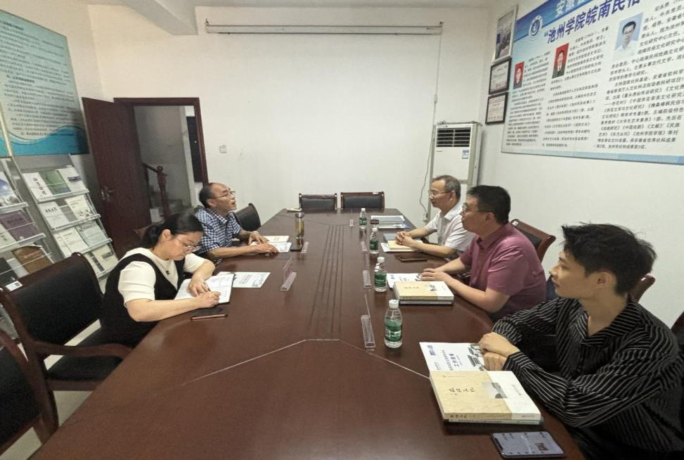 7月4日,校档案馆、博物馆馆长金仁义教授,中国中古史研究中心主任李正君博士,人文学院硕士研究生谢天生、郑成伟前往安徽省高校人文社科重点研究基地池州学院皖南民俗文化研究中心开展考察交流活动。池州学院皖南民俗文化研究中心主任谈家胜教授和祝亚雯老师热情接待了金仁义、李正君等一行。双方就各自的建设发展问题举行了座谈。