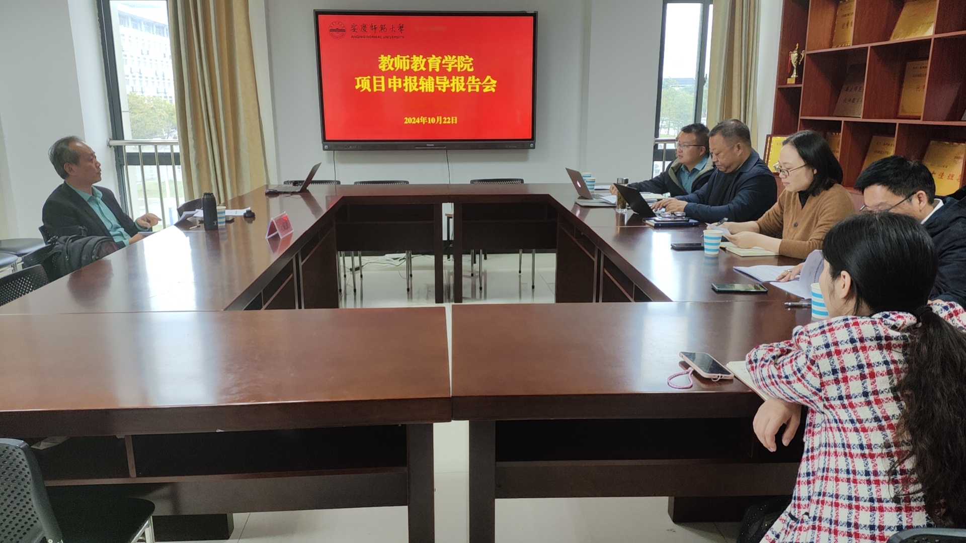 10月22日,安徽师范大学阮成武教授应邀为教师教育学院作项目申报辅导报告指导。会议由教师教育学院执行院长吴云助主持,该院部分教师参加了报告会。