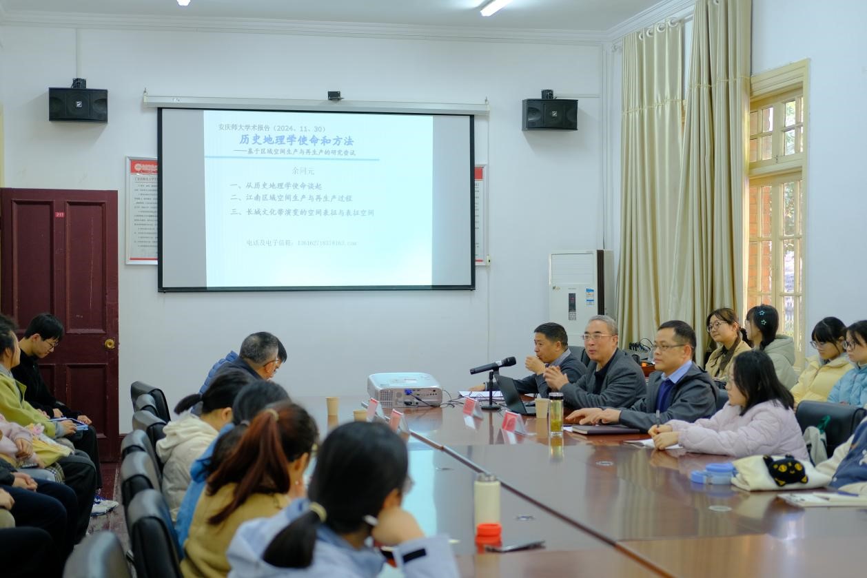 11月30日,苏州大学社会学院历史系博士生导师、国学研究所所长余同元教授应邀做客人文学院敬敷讲坛,作题为“历史地理学使命和方法——基于区域空间生产与再生产的研究尝试”的学术讲座。本次讲座由人文学院副院长沈志富教授主持,解春龙、胡世明博士为与谈人,该学院相关专业本科生、研究生参加此次讲座。