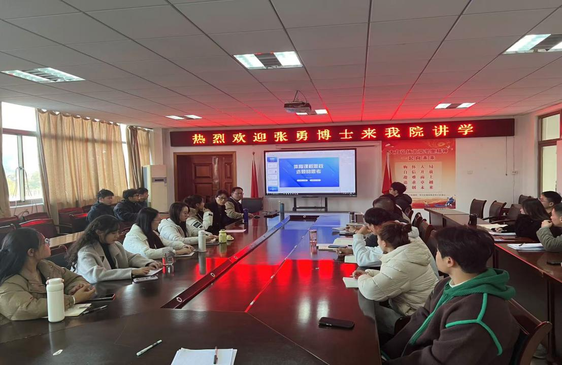 11月27日,体育学院邀请安徽工程大学的张勇博士举办了一场关于“体育课程思政”的讲座,旨在剖析体育课程思政的实质。此次讲座吸引了众多体育学院教师和研究生到场聆听学习和交流。