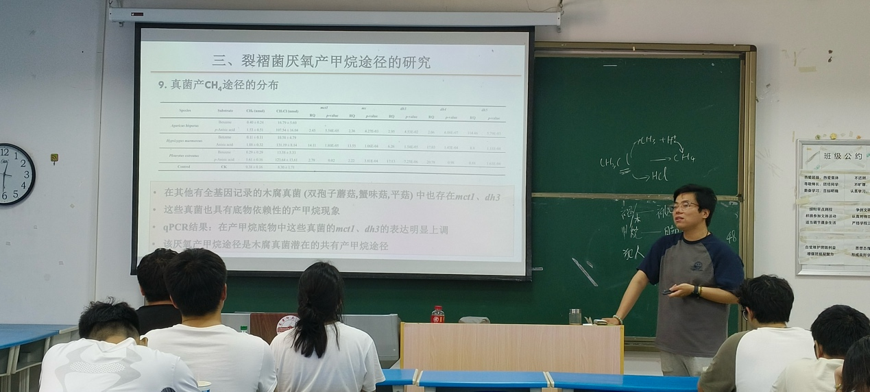 5月16日,生命科学学院黄欣博士在G103作“裂褶菌厌氧降解褐煤/木质素产甲烷的发现、 证明及代谢机理” 学术报告。生命科学学院生态学专业本科生和研究生聆听学术报告。